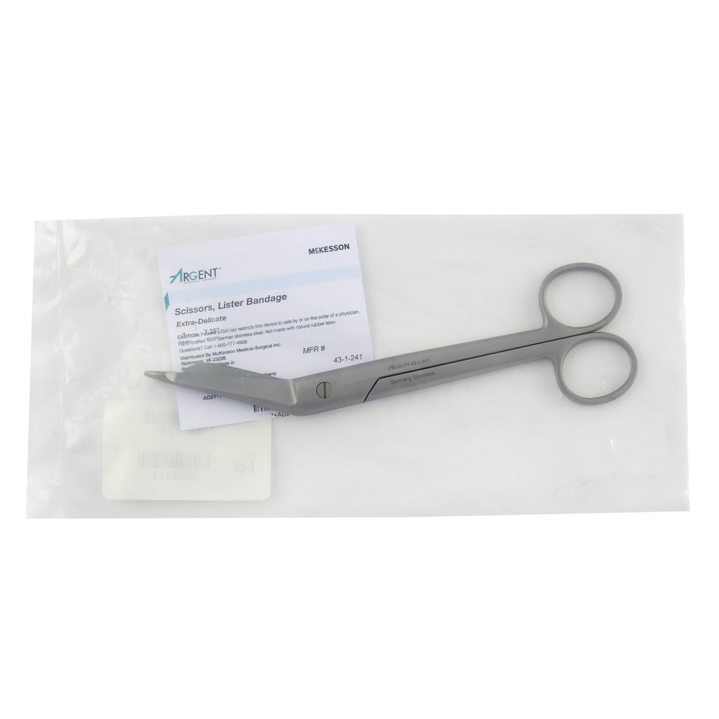 Bandage Scissors McKesson Argent™ Lister 7-1/4 Inch Length Surgical Grade Stainless Steel NonSterile Finger Ring Handle Angled Blunt Tip / Blunt Tip