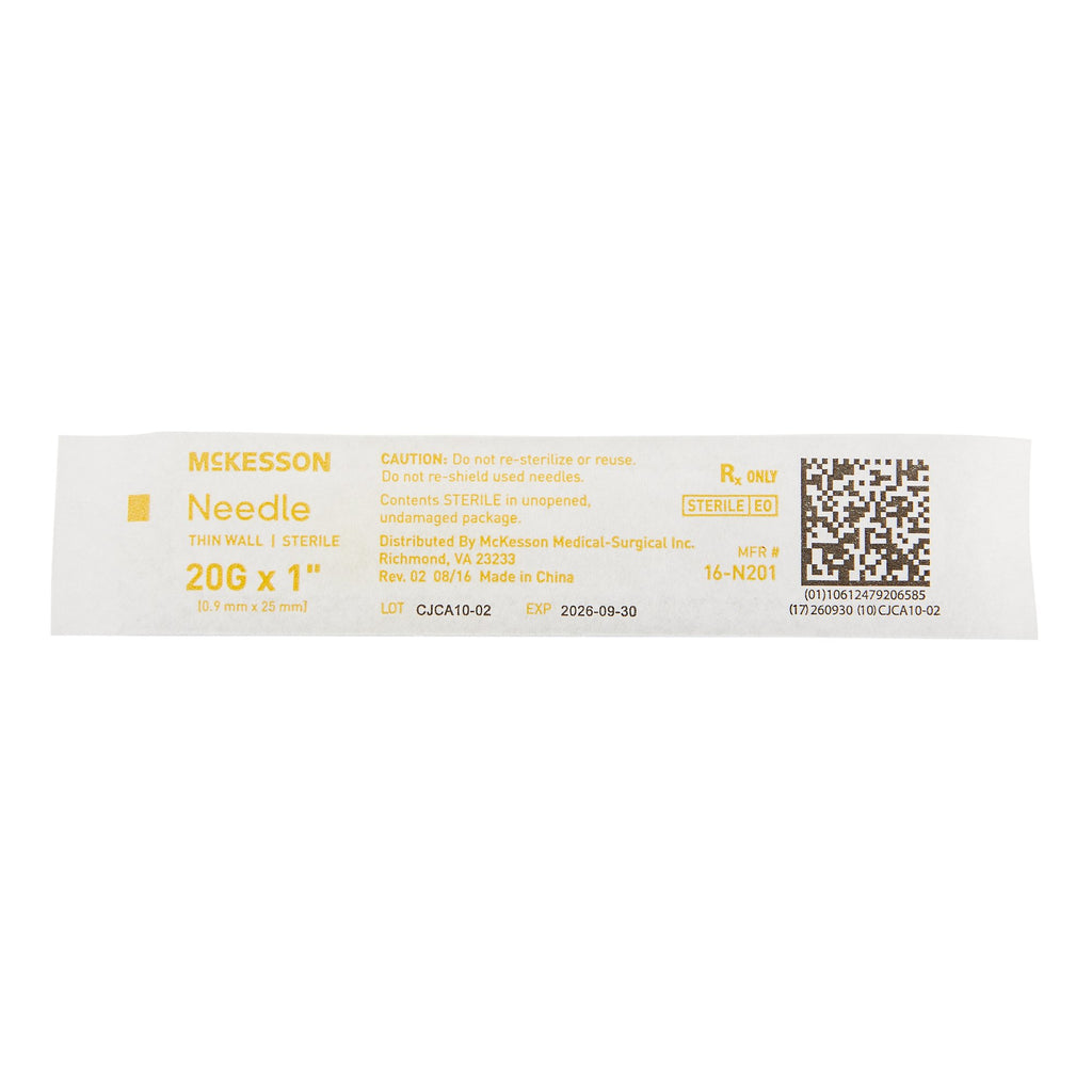 Hypodermic Needle McKesson 1 Inch Length 20 Gauge Thin Wall Without Safety