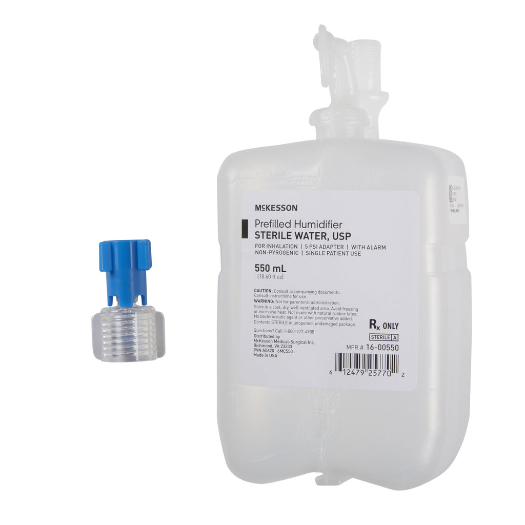 McKesson Humidifier Bottle with Adapter 550 mL Sterile Water Adult / Pediatric