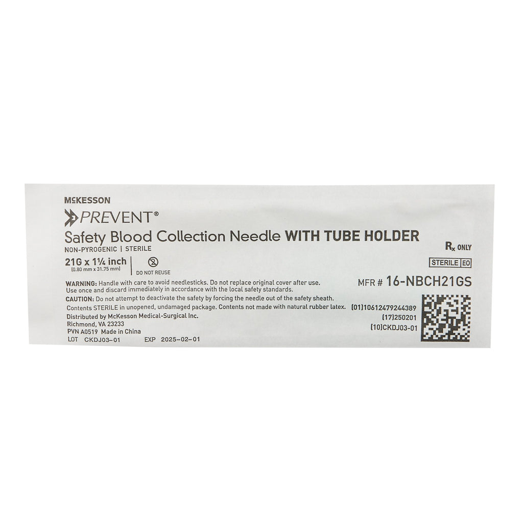 McKesson Prevent® HT Blood Collection Needle with Holder 21 Gauge 1-1/4 Inch Needle Length Safety Needle Without Tubing Sterile