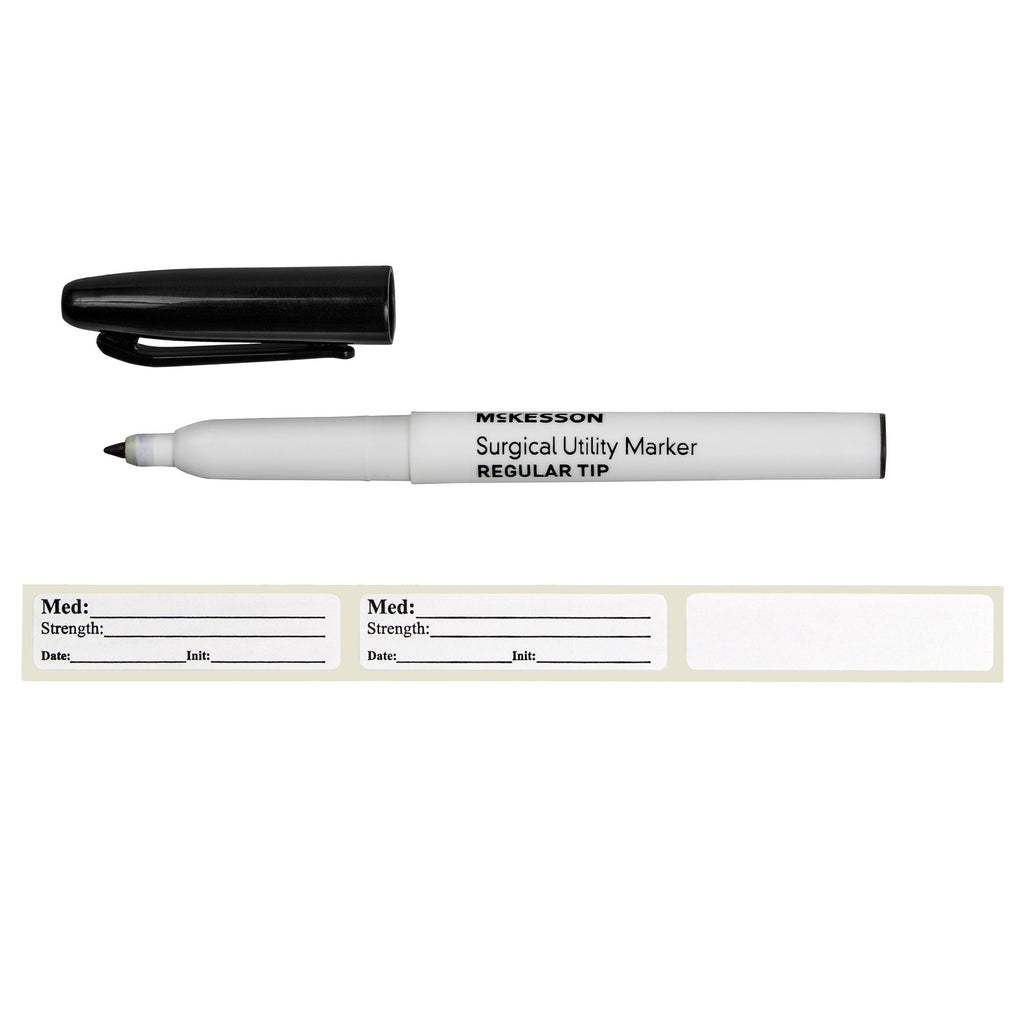 Medical Utility Marker with Labels McKesson Permanent Black Ink Sterile Full Size Regular Tip