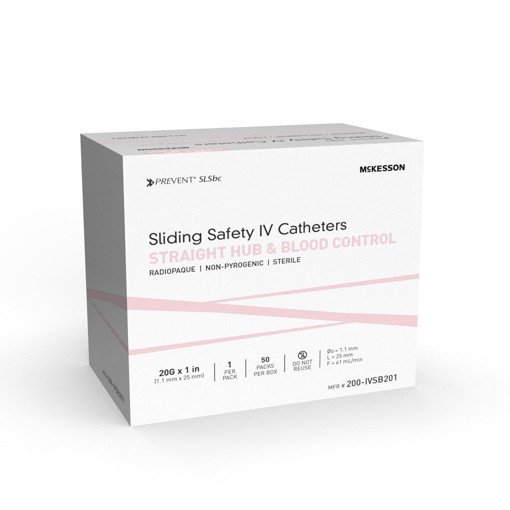 Peripheral IV Catheter Prevent® SLS 20 Gauge 1 Inch Polyurethane Straight Hub Blood Control Sliding Safety