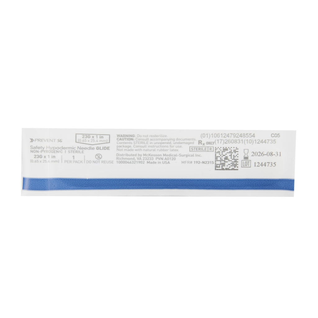 Safety Hypodermic Needle McKesson Prevent SG 1 Inch Length 23 Gauge Thin Wall Sliding Safety Needle