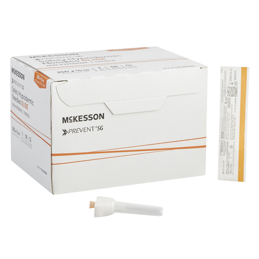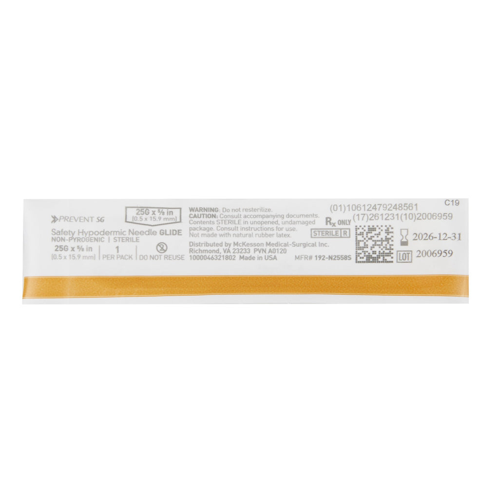 Safety Hypodermic Needle McKesson Prevent SG 5/8 Inch Length 25 Gauge Thin Wall Sliding Safety Needle