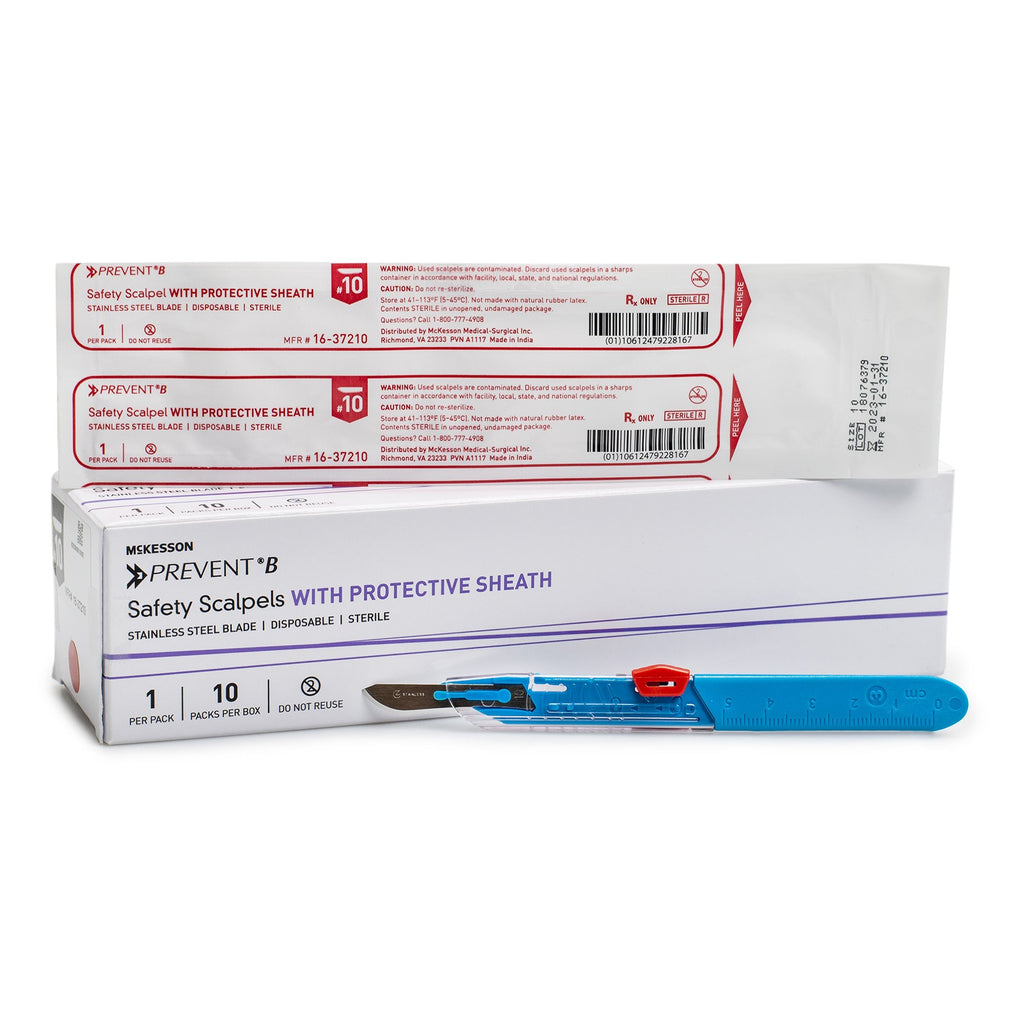 Safety Scalpel McKesson Prevent® B No. 10 Stainless Steel / Plastic Classic Grip Handle Sterile Disposable