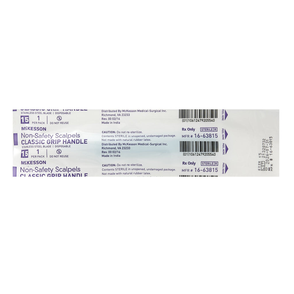 Scalpel McKesson No. 15 Stainless Steel / Plastic Classic Grip Handle Sterile Disposable