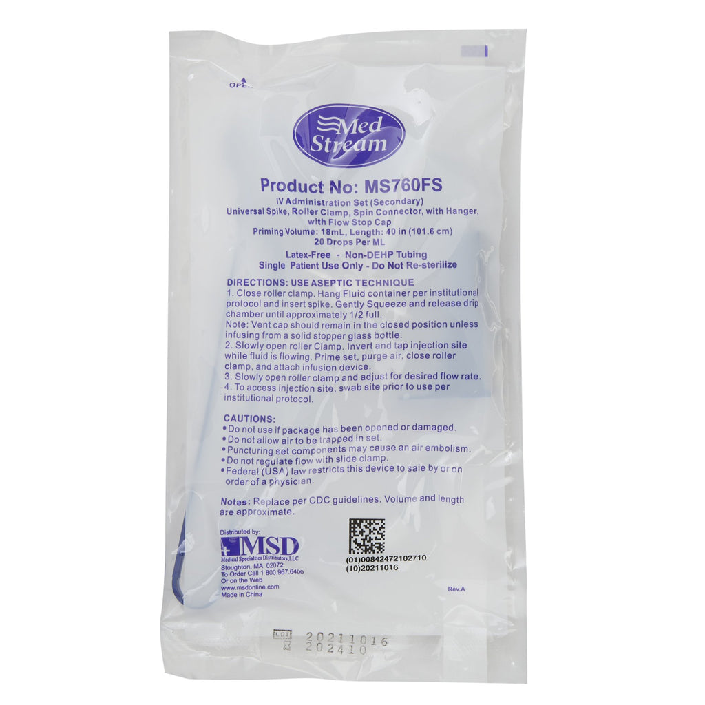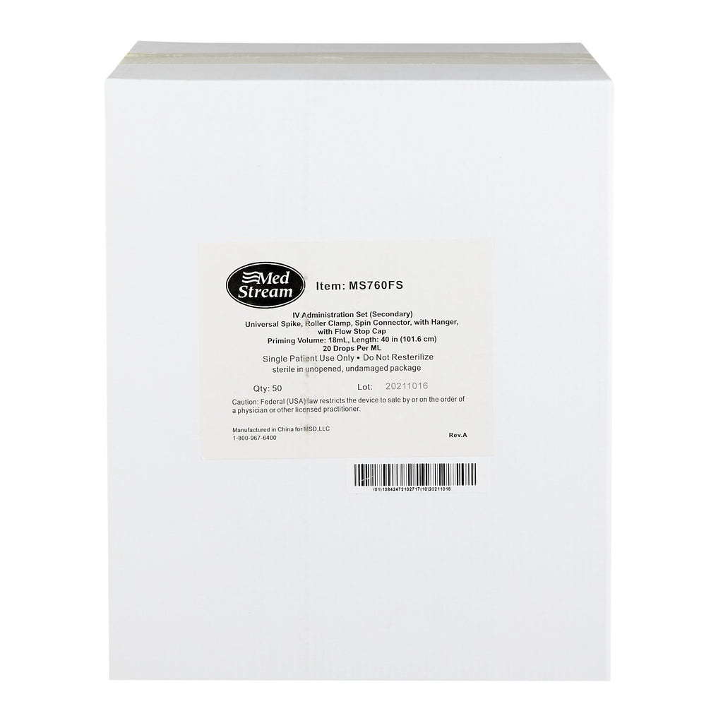 Secondary IV Administration Set MedStream Gravity Without Ports 20 Drops / mL Drip Rate Without Filter 40 Inch Tubing Solution