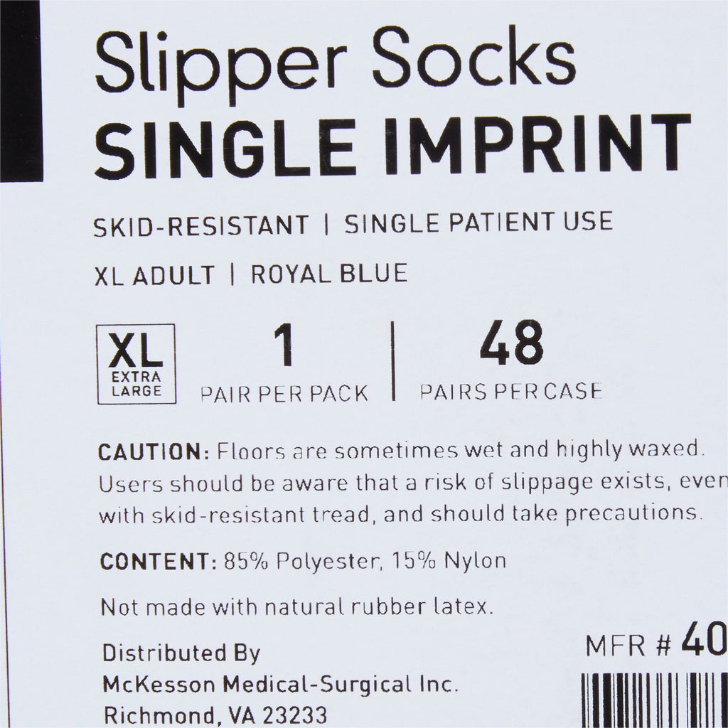 Slipper Socks McKesson Terries™ Unisex Adult X-Large Single Tread Single Patient Use Royal Blue