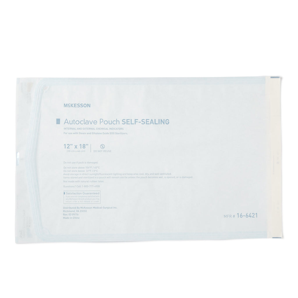 Sterilization Pouch McKesson Ethylene Oxide (EO) Gas / Steam 12 X 18 Inch Transparent Blue / White Self Seal Paper / Film