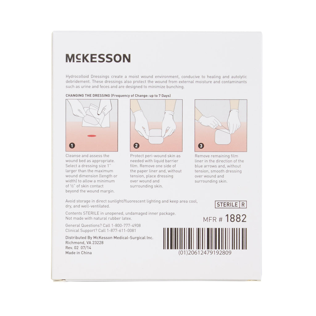 Thin Hydrocolloid Dressing McKesson Film Backing 2 X 2 Inch Square Hydrocolloid