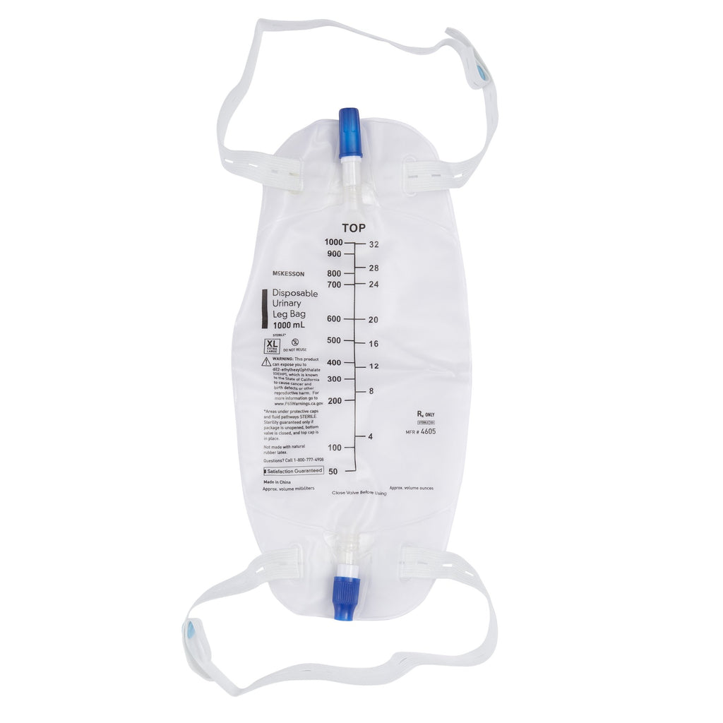 Urinary Leg Bag McKesson Anti-Reflux Valve Sterile 1,000 mL Vinyl