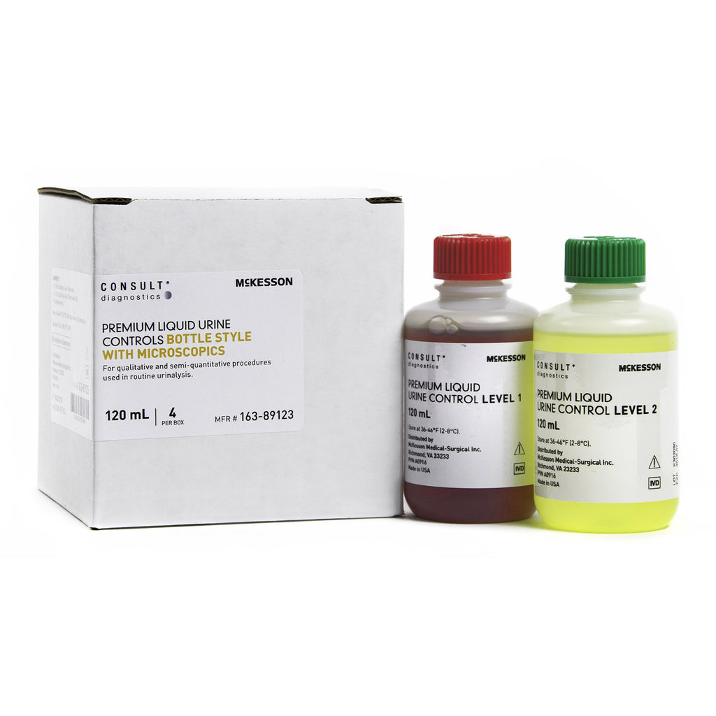 Urine Chemistry Control Set McKesson Consult™ Microscopic Testing Positive Level / Negative Level 2 Level 1 (Abnormal) 120 mL Bottles, 2 Level 2 (Normal with hCG) 120 mL Bottles